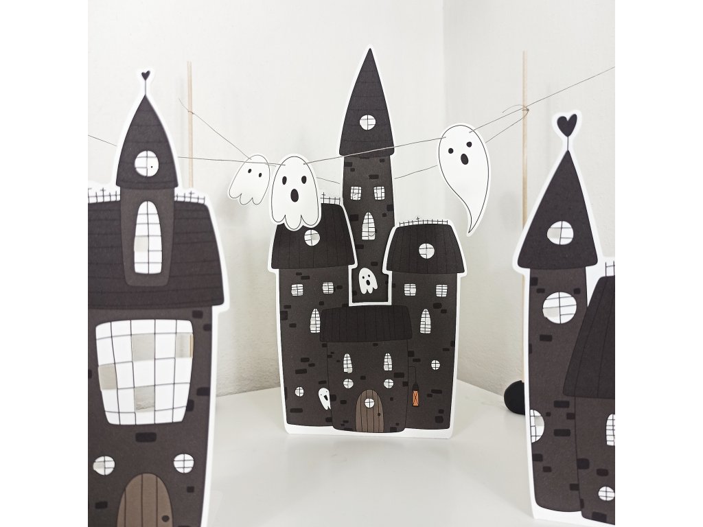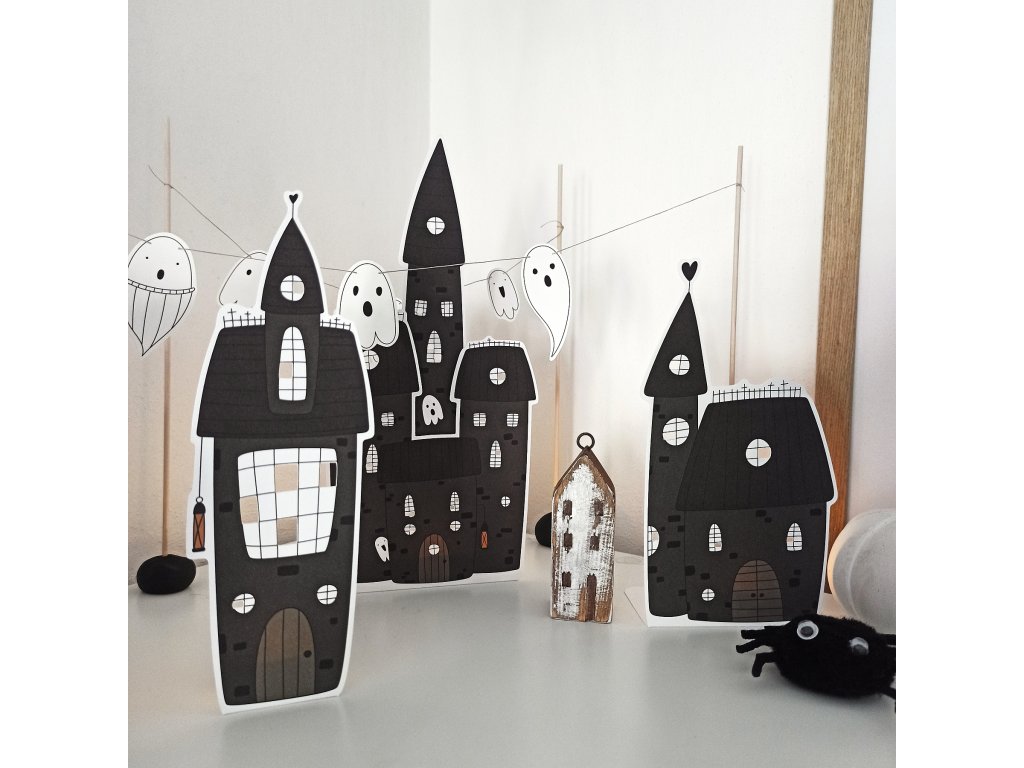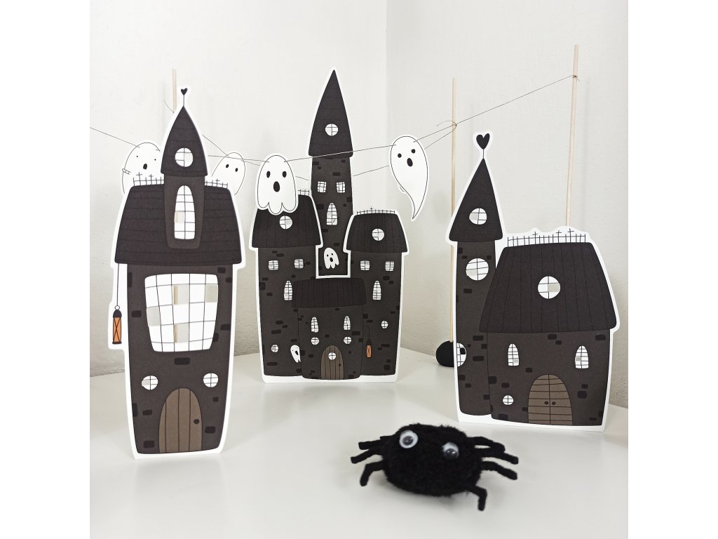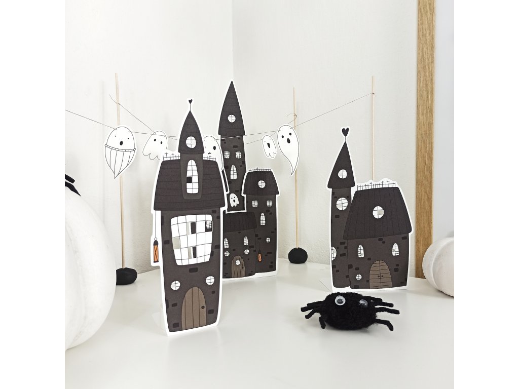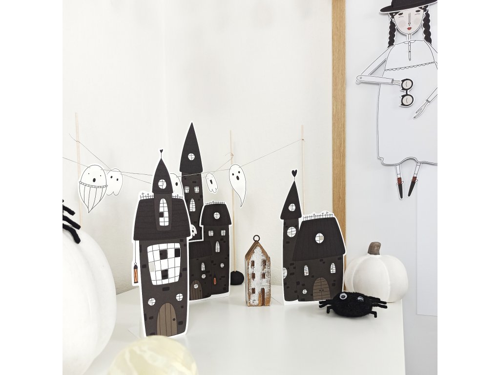Domečky i duchové jsou vytištěny na grafický papír vyšší gramáže (matná křída, 300g).