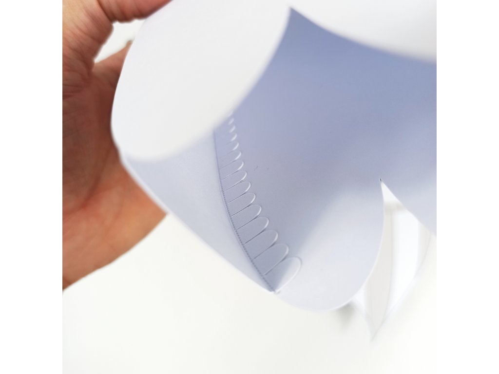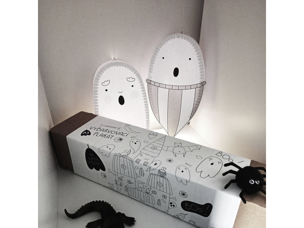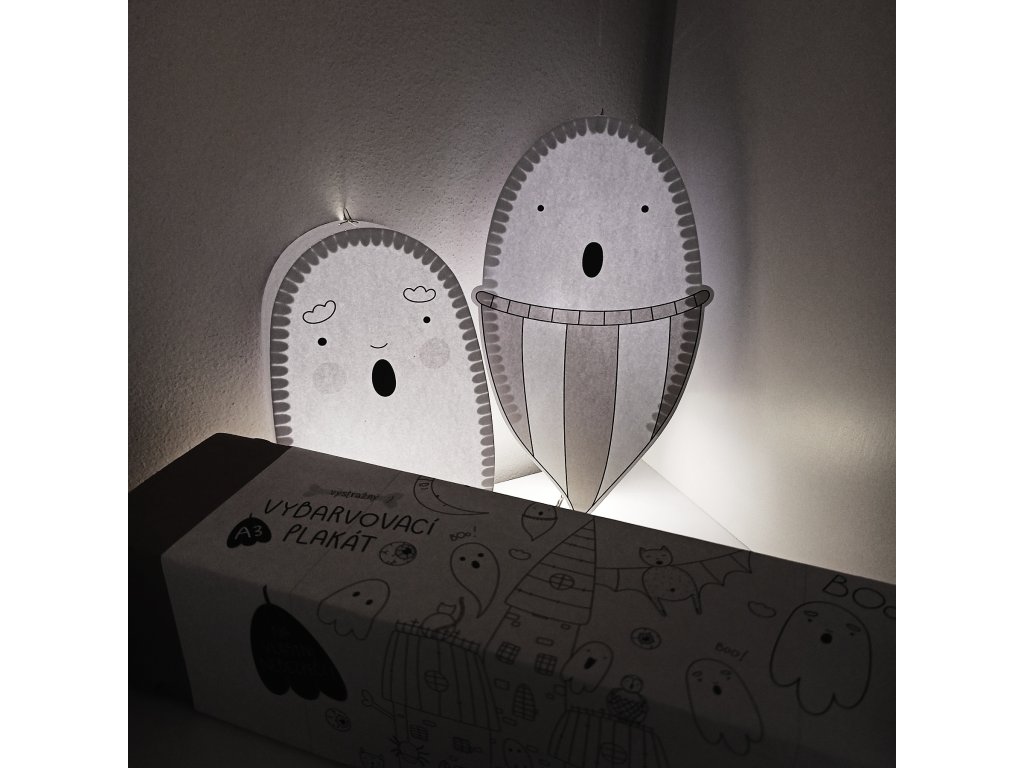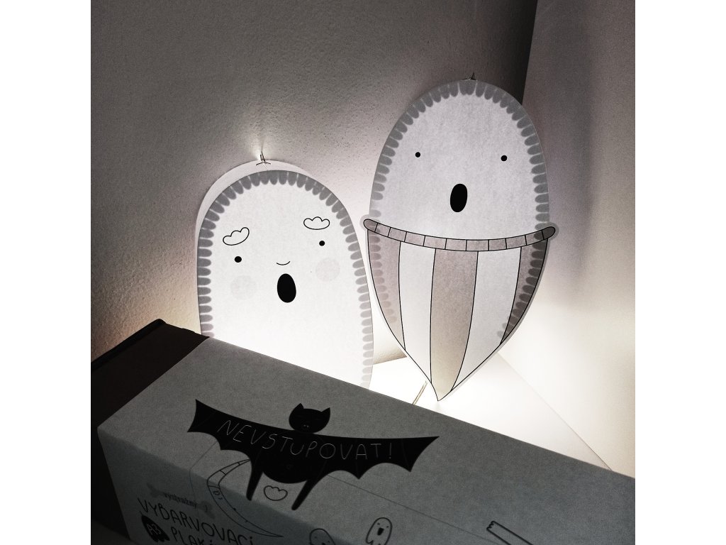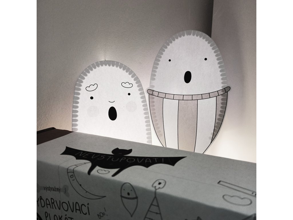 Duchové jsou vytištění na grafický papír vyšší gramáže (250g). Součástí balení jsou také již vyřezané spojovací pásky, díky kterým získají duchové po slepení 3D rozměr, návod k sestavení a provázek k zavěšení.