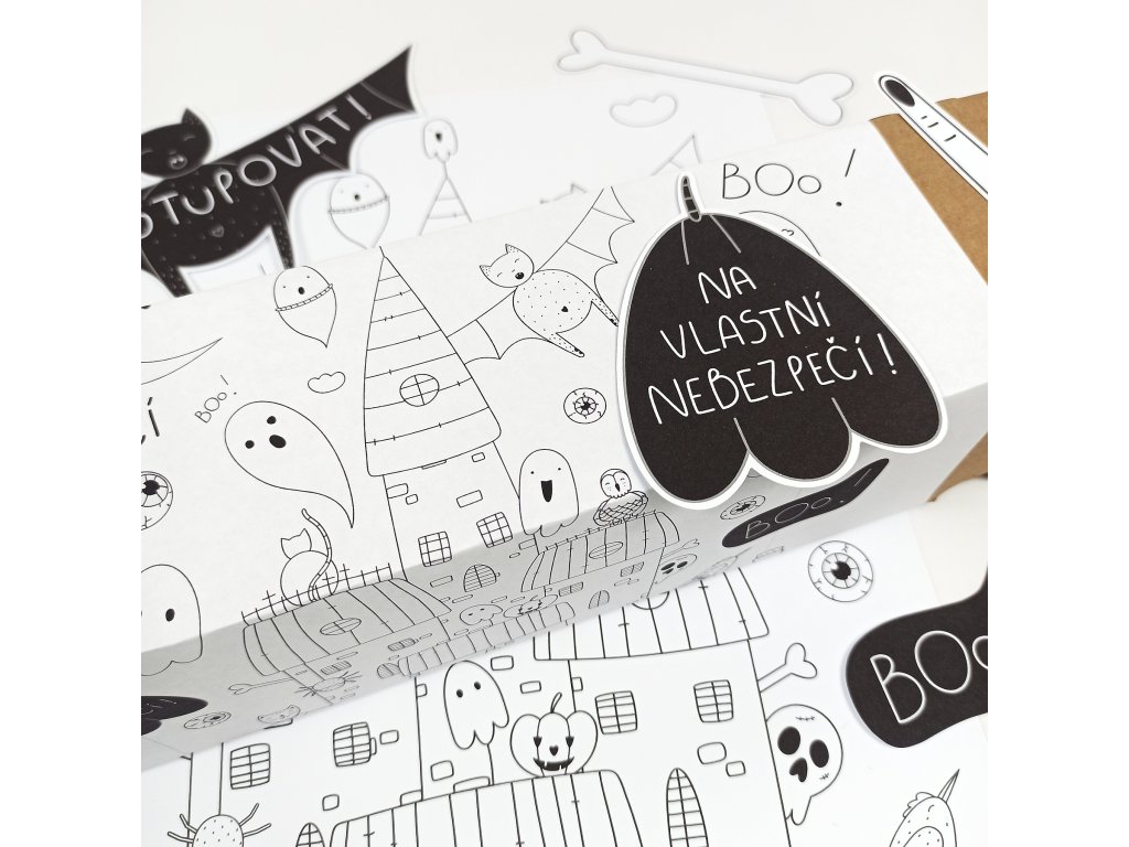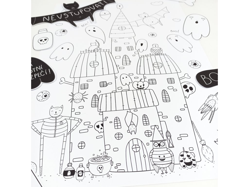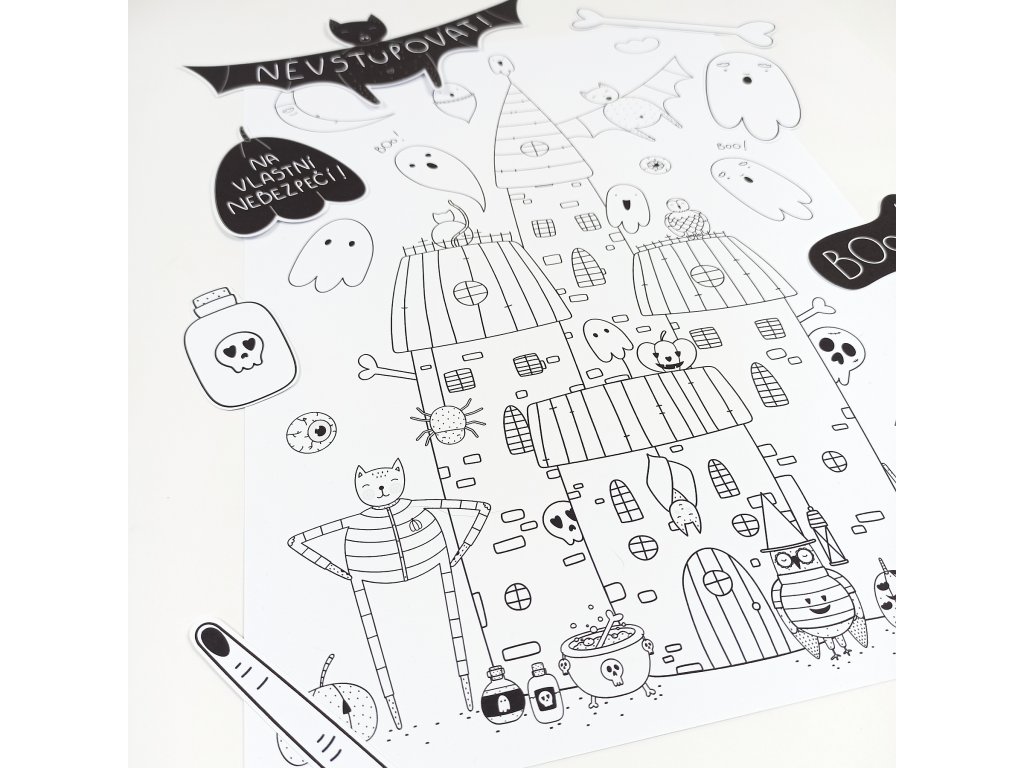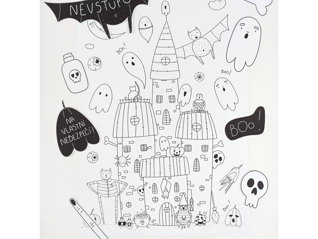 A3 plakát - omalovánkový - je vytištěný na kreslící karton vyšší gramáže (250g) a jeho součástí je také A4 arch - vystřihovánka - s výstražnými obrázky.