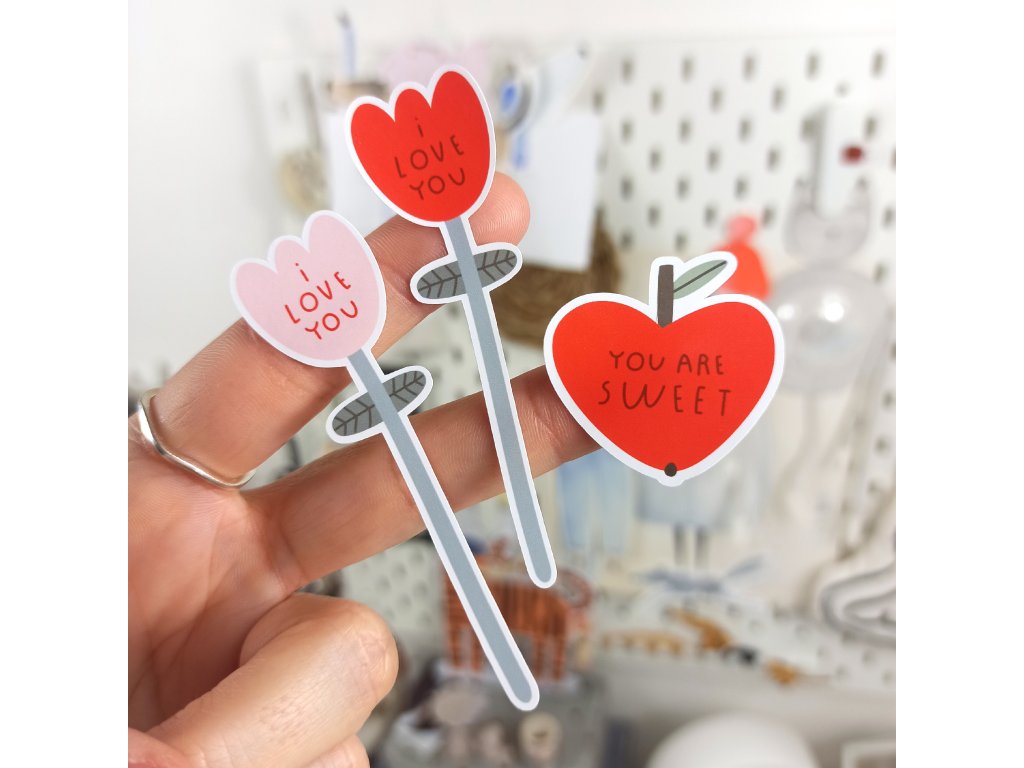 Velikost nálepek: např. tulipán "I love you" je velký 7,5x2 cm