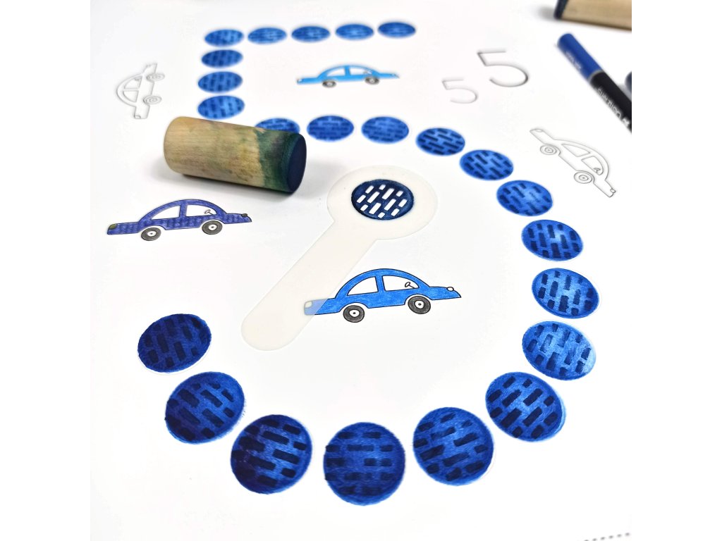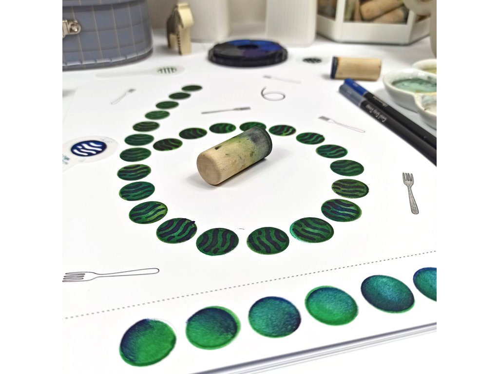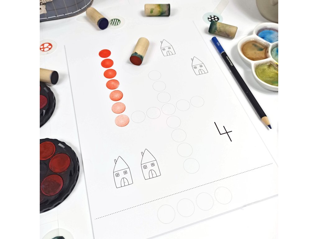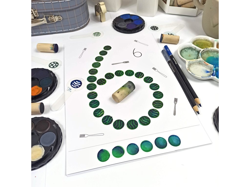 - 12 listů A4 (kreslící karton 250g) + 1 dřevěný váleček/punťok (průměr 18mm)