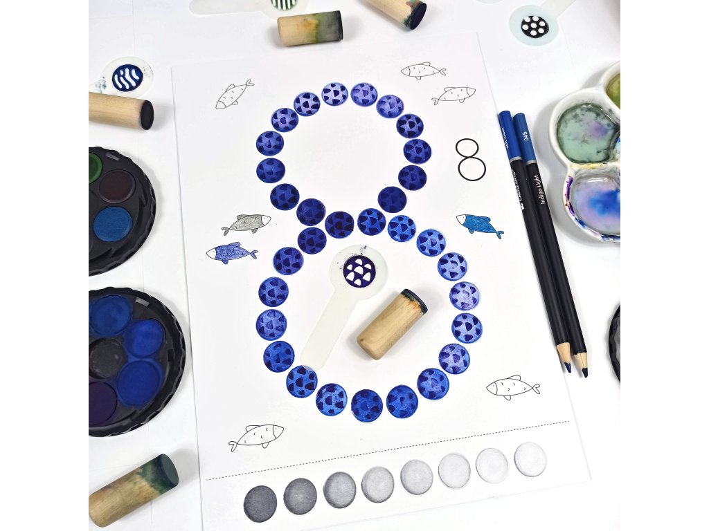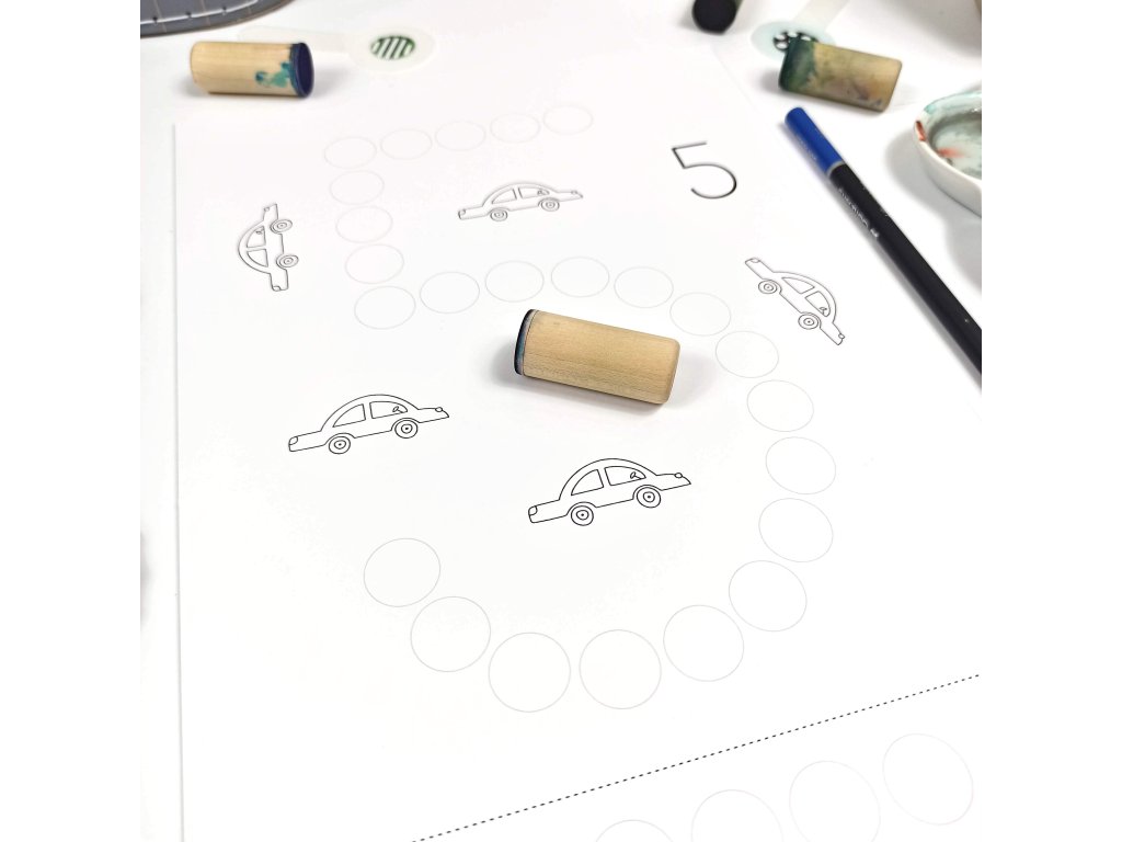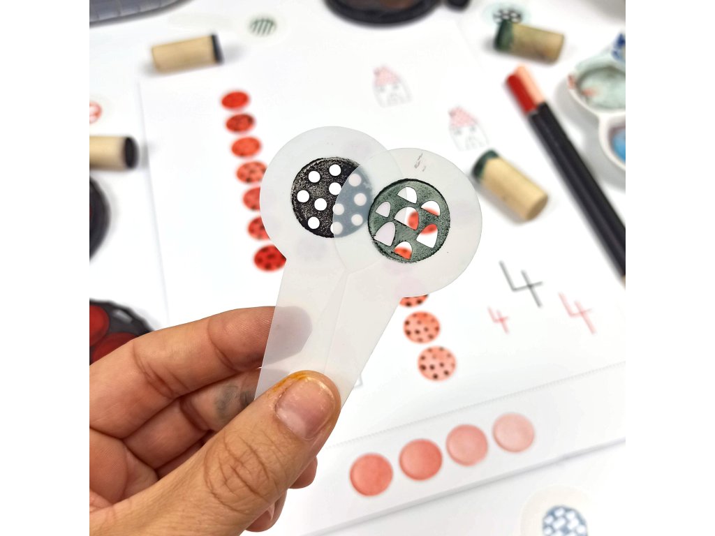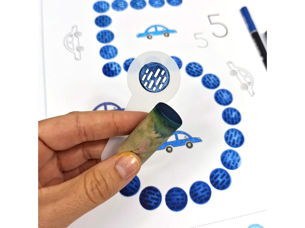 - 12 listů A4 (kreslící karton 250g) + 1 dřevěný váleček/punťok (průměr 18mm)