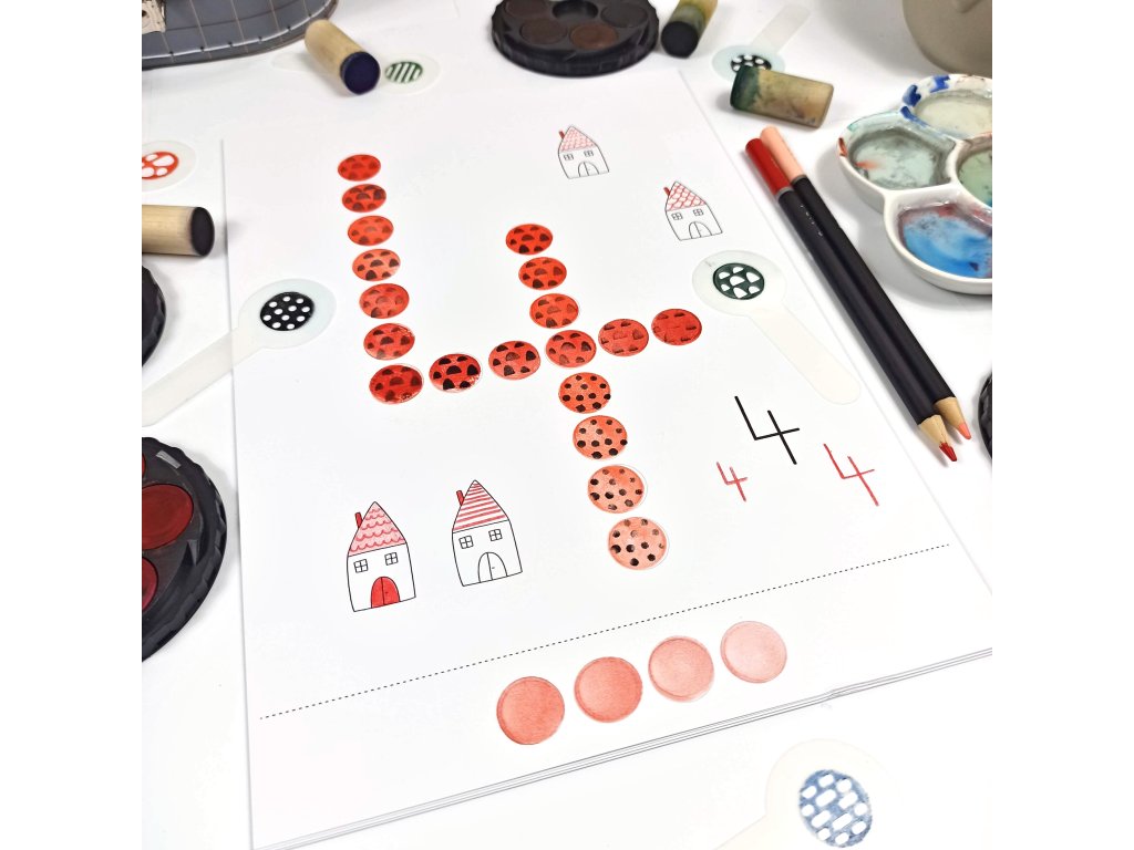 Součástí Puntíkovánek je také zkušební list a plakátek s čísly.