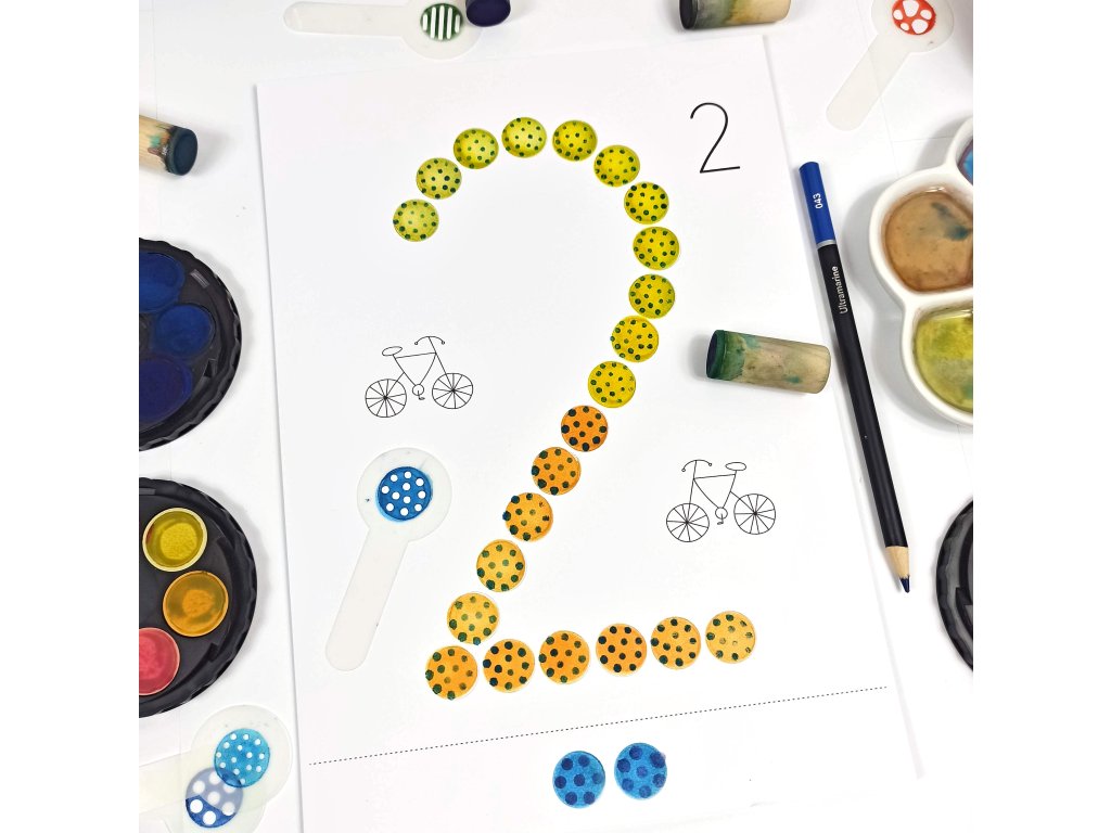 Deset čísel - od nuly po devítku - si děti zábavnou formou vybarví v jejich puntíkaté podobě.