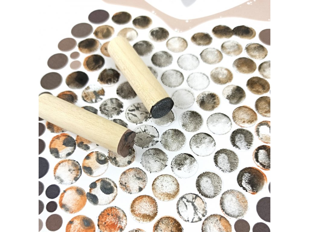 Neoddělitelnou součástí PUNTÍKOVÁNEK jsou však zejména 3 dřevěné válečky - punťoky, které nahrazují štětec.