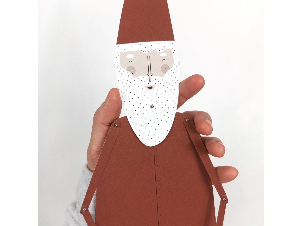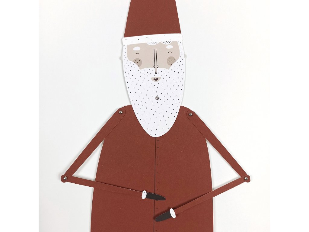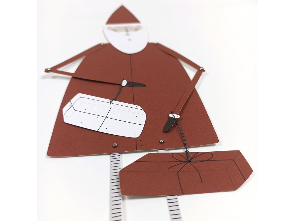 40 cm vysoký Santa s pohyblivými končetinami a dvěma balíčky, které mu lze pověsit na ruku.