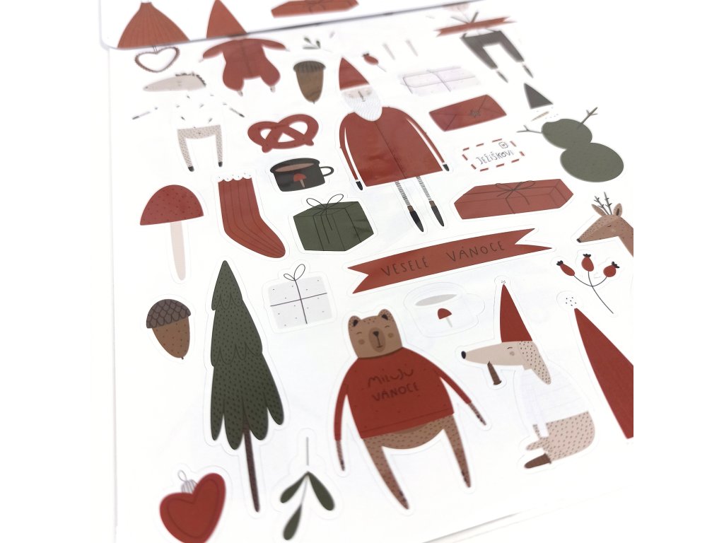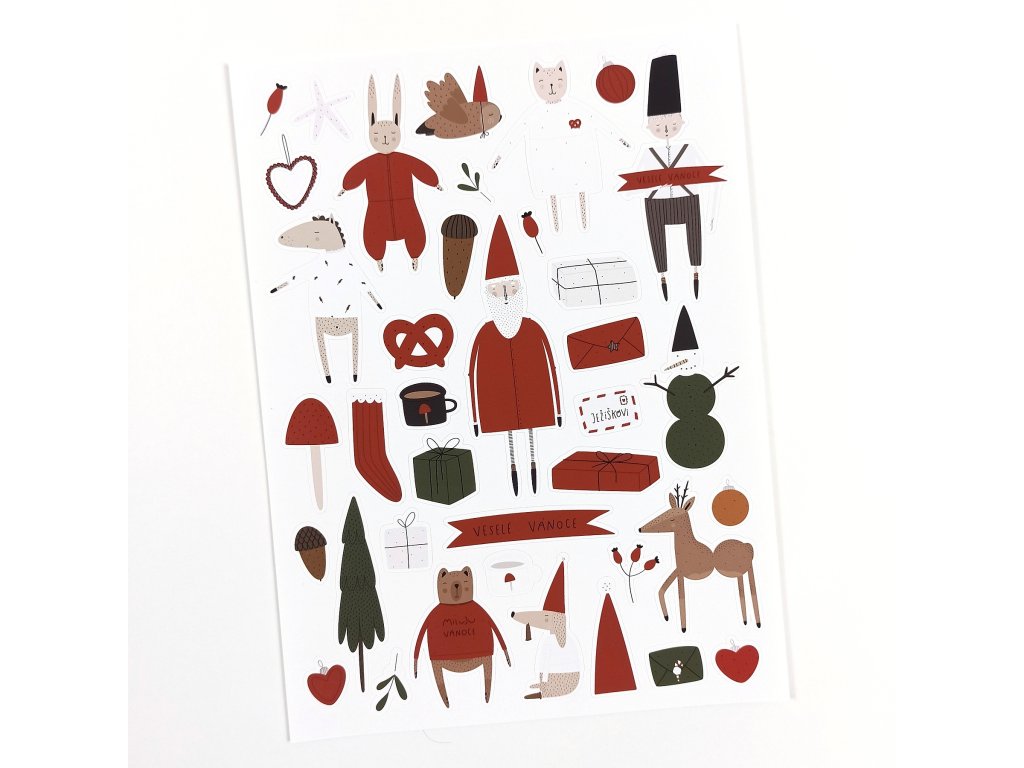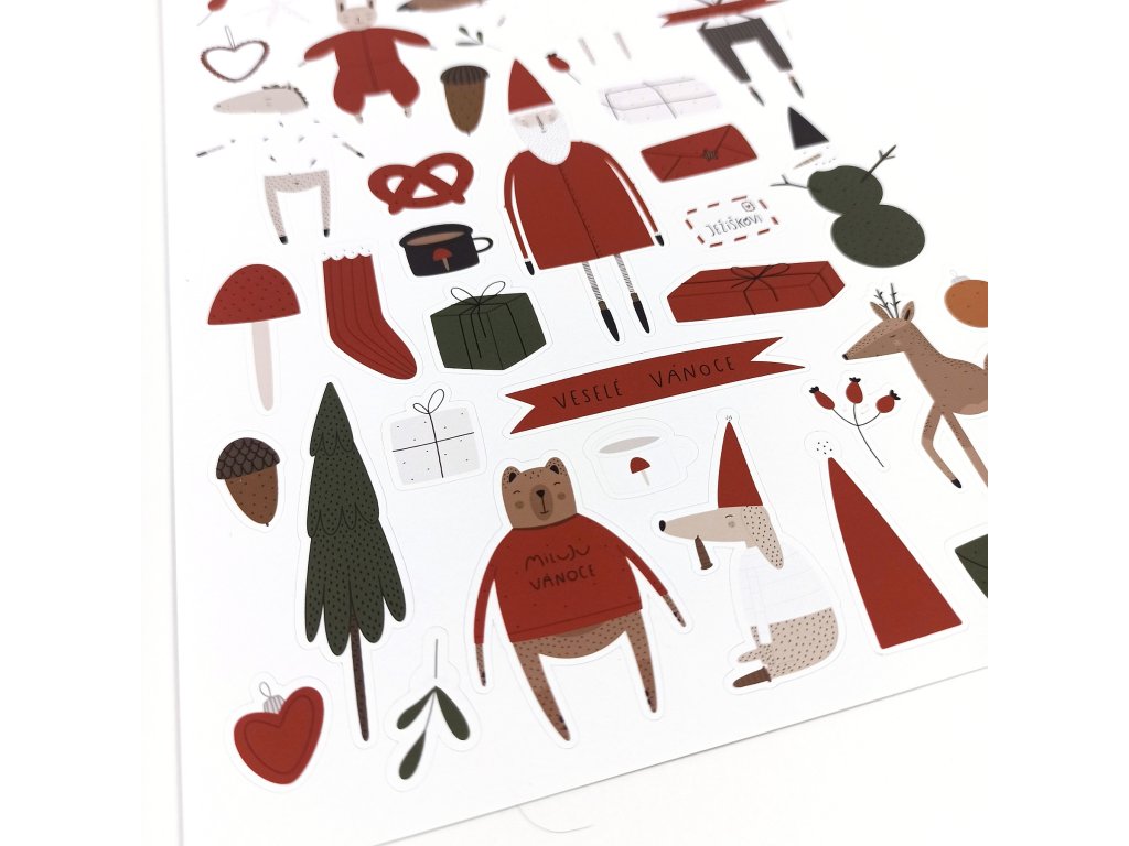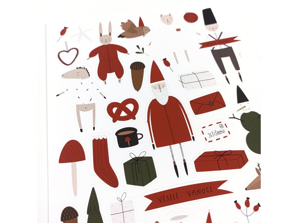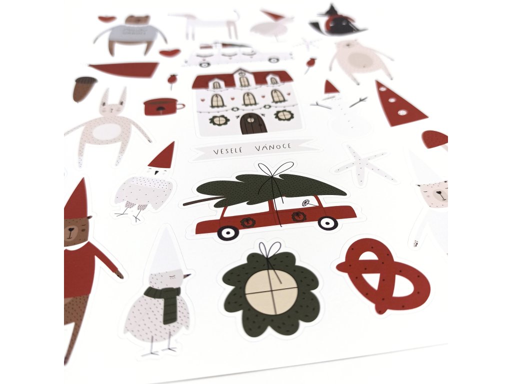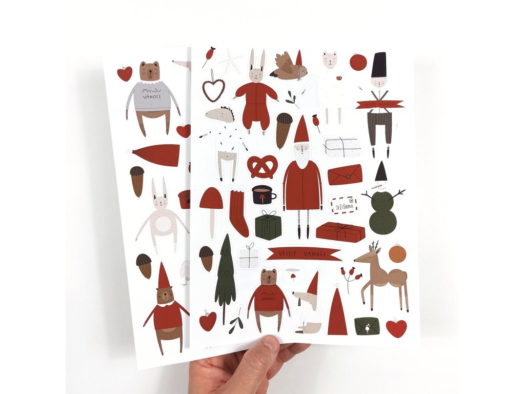 67 samolepek (2 archy) s autorskými - vánočními - obrázky.