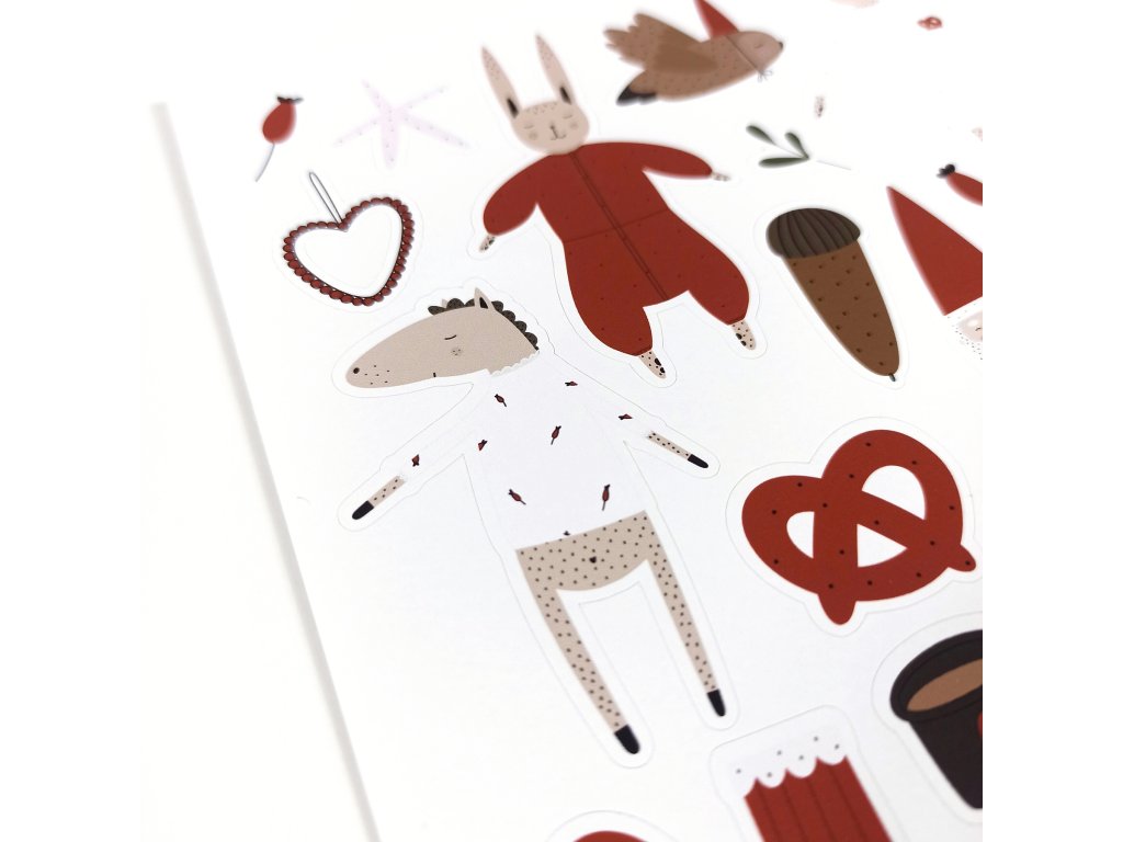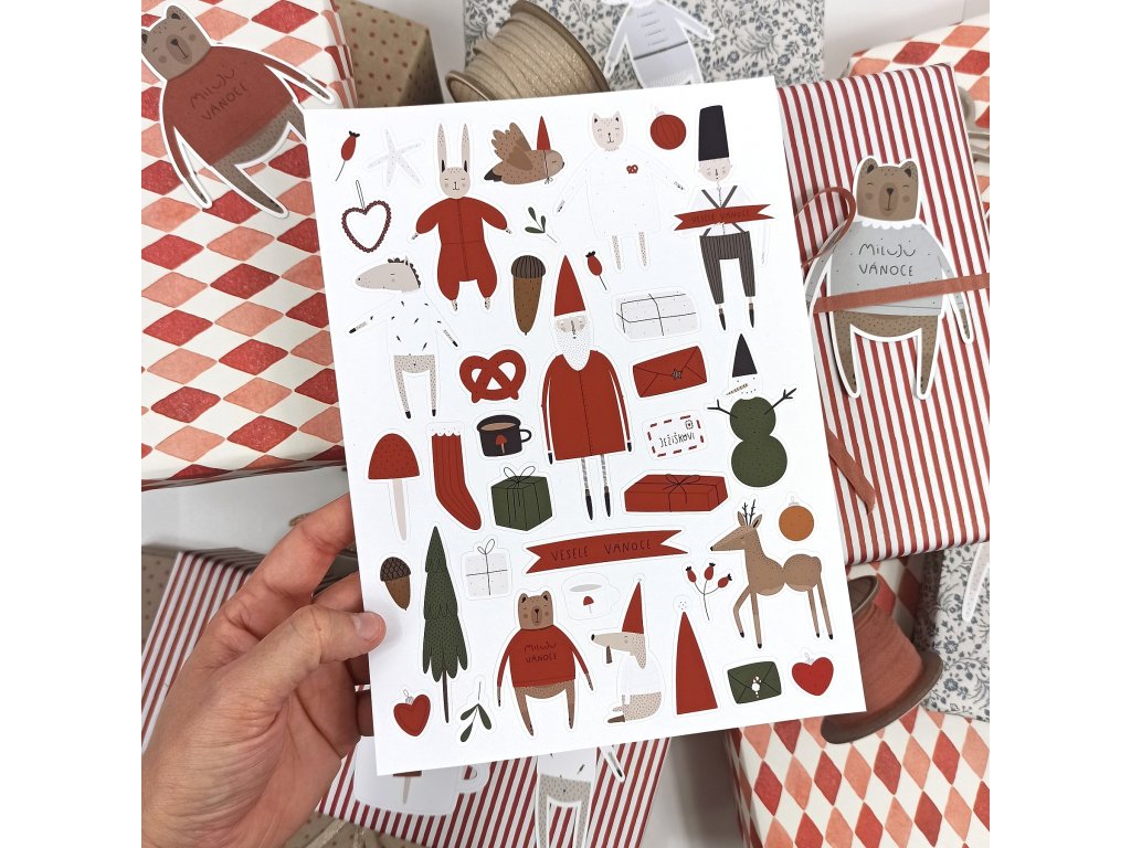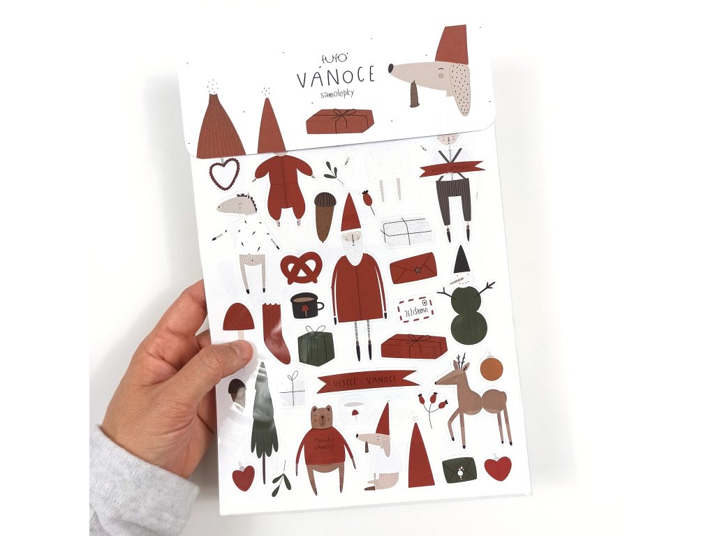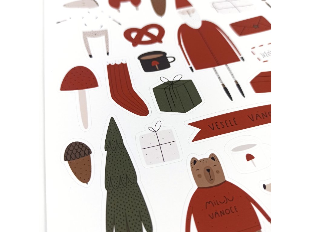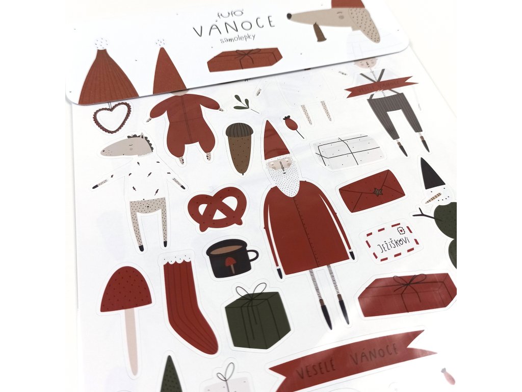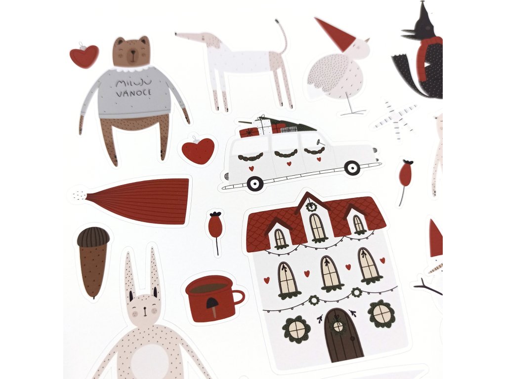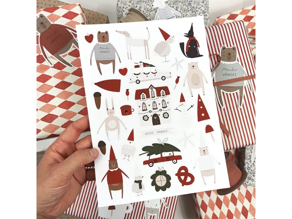 67 samolepek (2 archy) s autorskými - vánočními - obrázky.